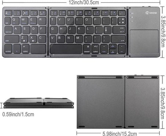 Opvouwbaar Bluetooth Toetsenbord met Touchpad – Ultradun Foldable Keyboard – Bluetooth 3.0 Technologie – Universeel – Voor Windows, Android, iOS & MacOS – QWERTY Toetsenbord - Compact