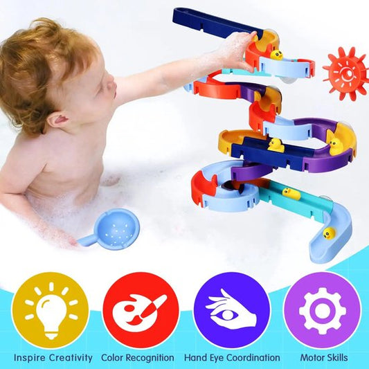 KoningBen® Badspeelgoed - Waterval Glijbaan Badspeelset - Inclusief Kleurrijke Badkrijtjes - 48-delige Waterbaan met Eendjes - Kleuren in Bad - Inclusief Kleurrijke Badkrijtjes - Sinterklaas -