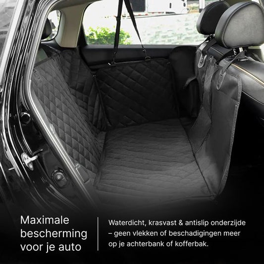 KoningBen® Hondendeken Auto Achterbank – Incl. 2 Autogordels - Achterbank & Kofferbak – 145×135 cm – Antislip & Spatwaterdicht – Zwart