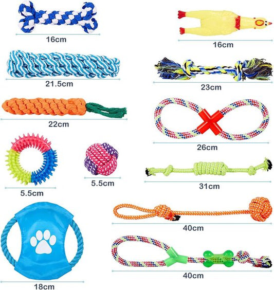 KoningBen® Honden Speelgoed Set – 12 Stuks – Voor Puppy’s & Middelgrote Honden – Interactief Hondenspeelgoed – Incl. Hondenbal, Frisbee & Trektouw