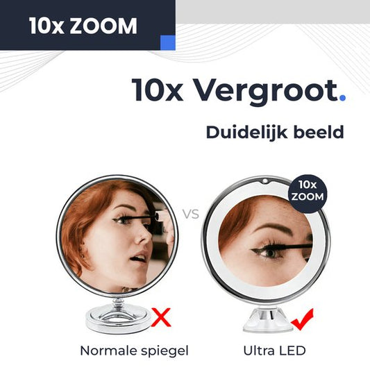 Ultra LED Make Up Spiegel met Verlichting en 10x Vergroting - Scheerspiegel met Zuignap - 360° Verstelbaar – Draadloos 3 AAA Batterijen