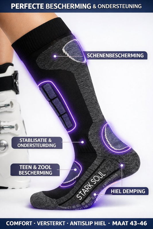 STARK SOUL Skisokken - Set van 4 paar – wandelsokken - Thermo Outdoor & Sport Unisex – Verstevigde Zones – Elastisch Comfort – Sokken heren - sokken dames – Maat 43-46